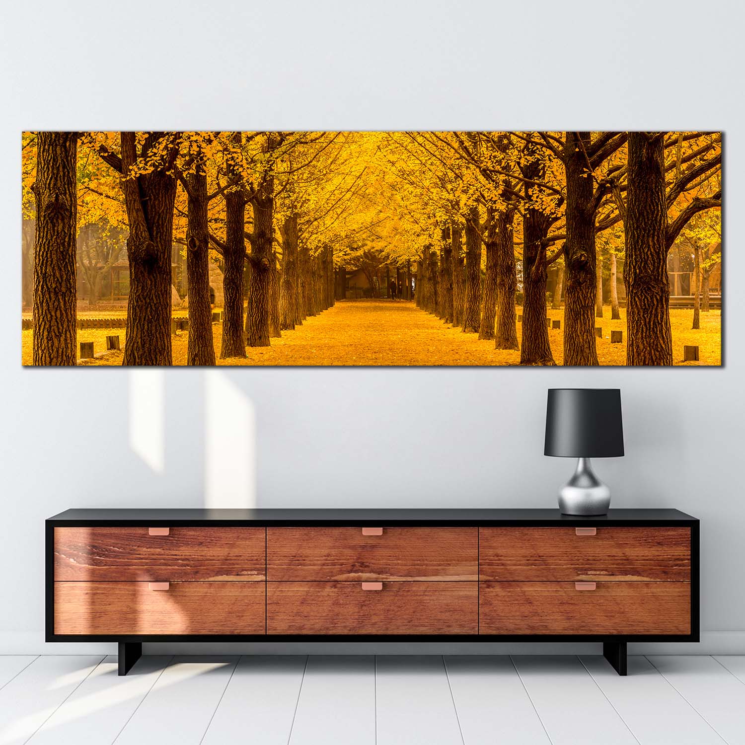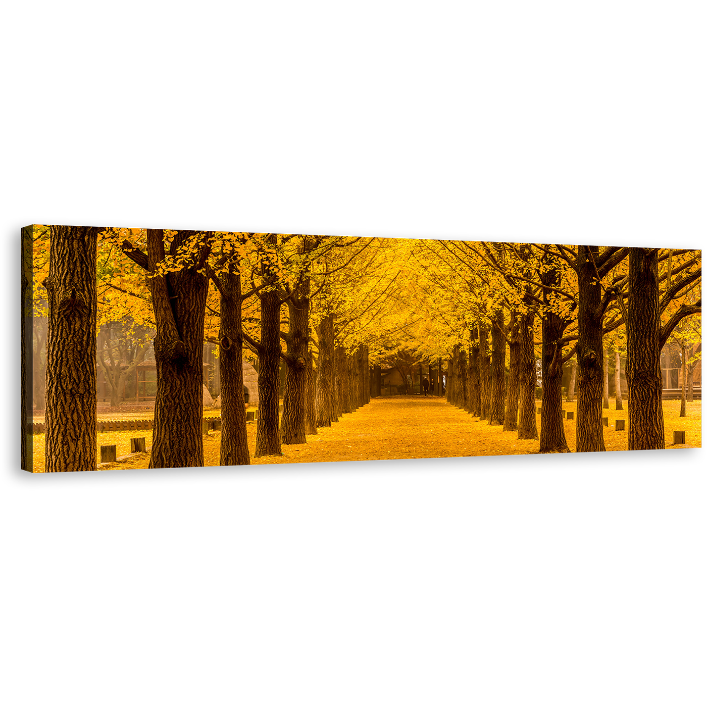 Autumn Forest Canvas Wall Art, Orange Forest Path 1 Piece Canvas Print, Brown Trees Scenery Wide Canvas Canvas Print