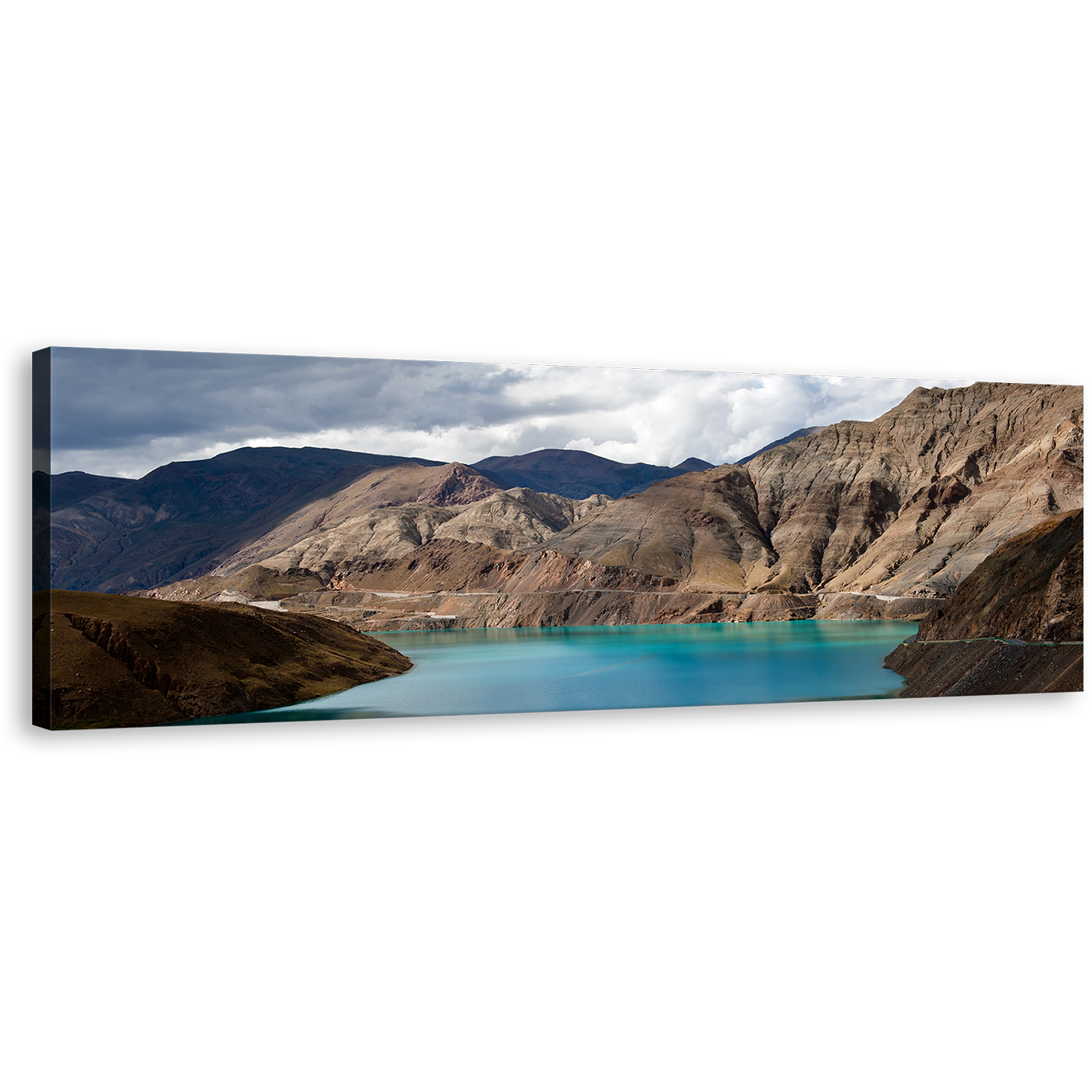 Yamdrok Lake Canvas Wall Art, Yamdrok Yumtso Brown Ocean Mountain Panoramic Canvas, Sacred Blue Tibet Lat Canvas Print Canvas Print