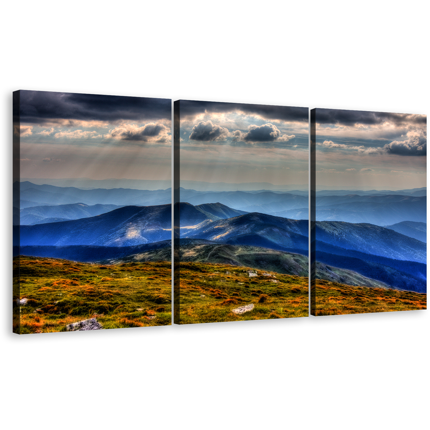 Carpathians Mountain Canvas Wall Art, Petros Moun Canvas Print, Green Ukrainian Scenery 3 Piece Canvas, National Park Chornogora Blue Landscape Canvas Set Canvas Print