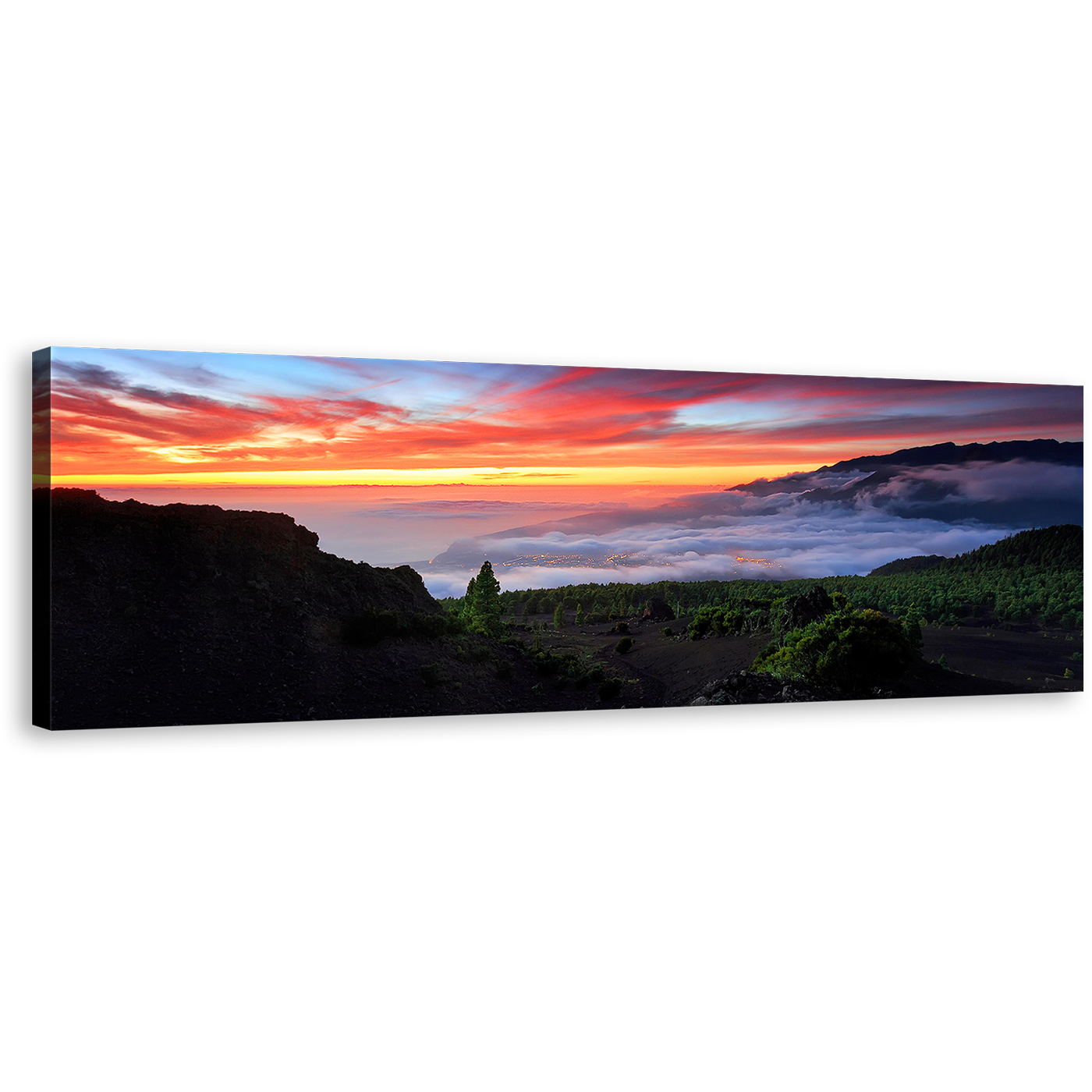 La Palma Canvas Wall Art, Spain Landscape at Yellow Sunset Canvas Print, Europe Green Mountains Panoramic Canvas Canvas Print