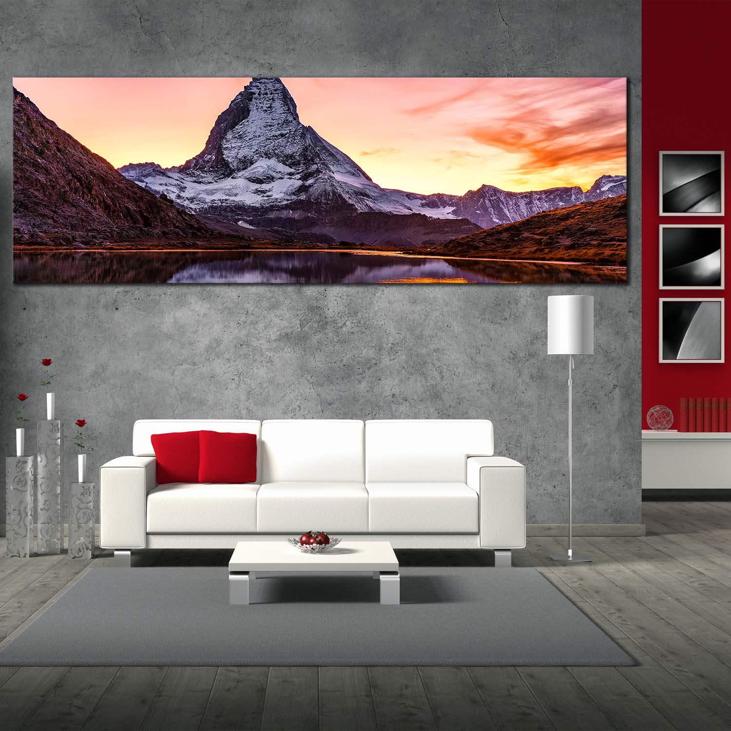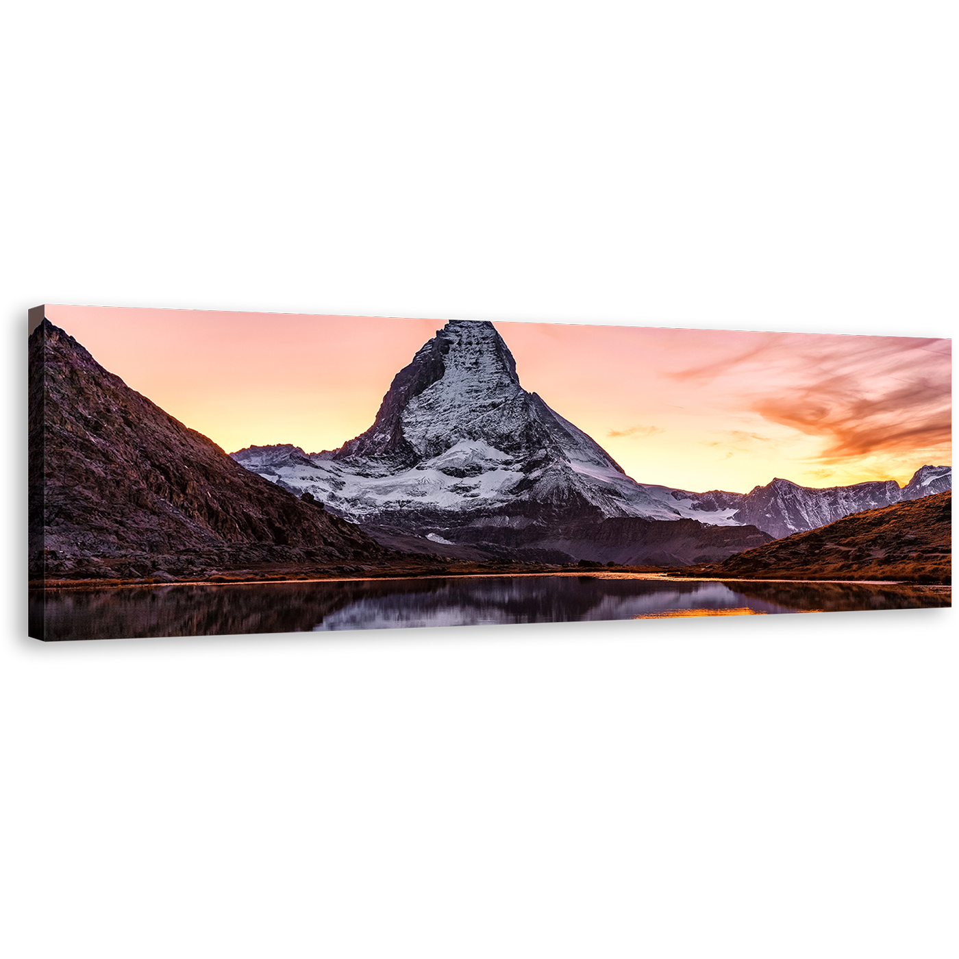 Switzerland Landscape Canvas Wall Art, Yellow Sunset View Riffelsee Lake 1 Piece Canvas Artwork, White Mountain Peak Reflection Canvas Print Canvas Print