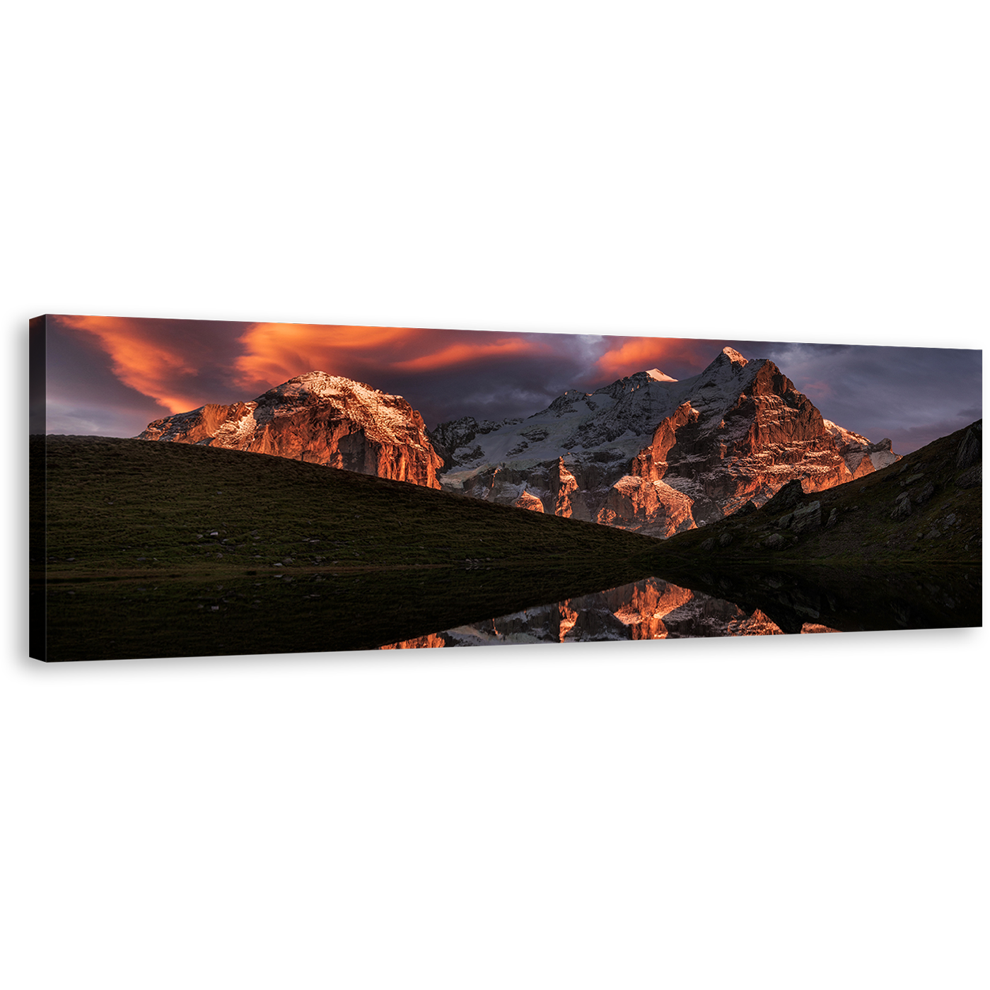 Majestic Landscape Canvas Wall Art, Cloudy Sunset Brown Mountain Reflection Canvas Artwork, Green Landscape 1 Piece Canvas Print Canvas Print