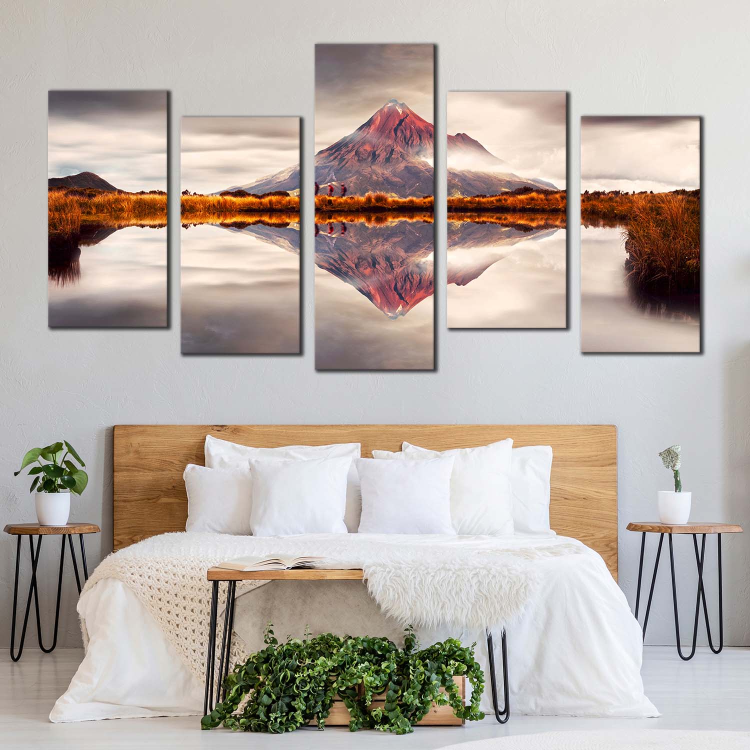Mountain Scenery Canvas Wall Art, New Zealand White Mount Taranaki 5 Piece Multiple Canvas, Brown Mountain Canvas Print Canvas Print