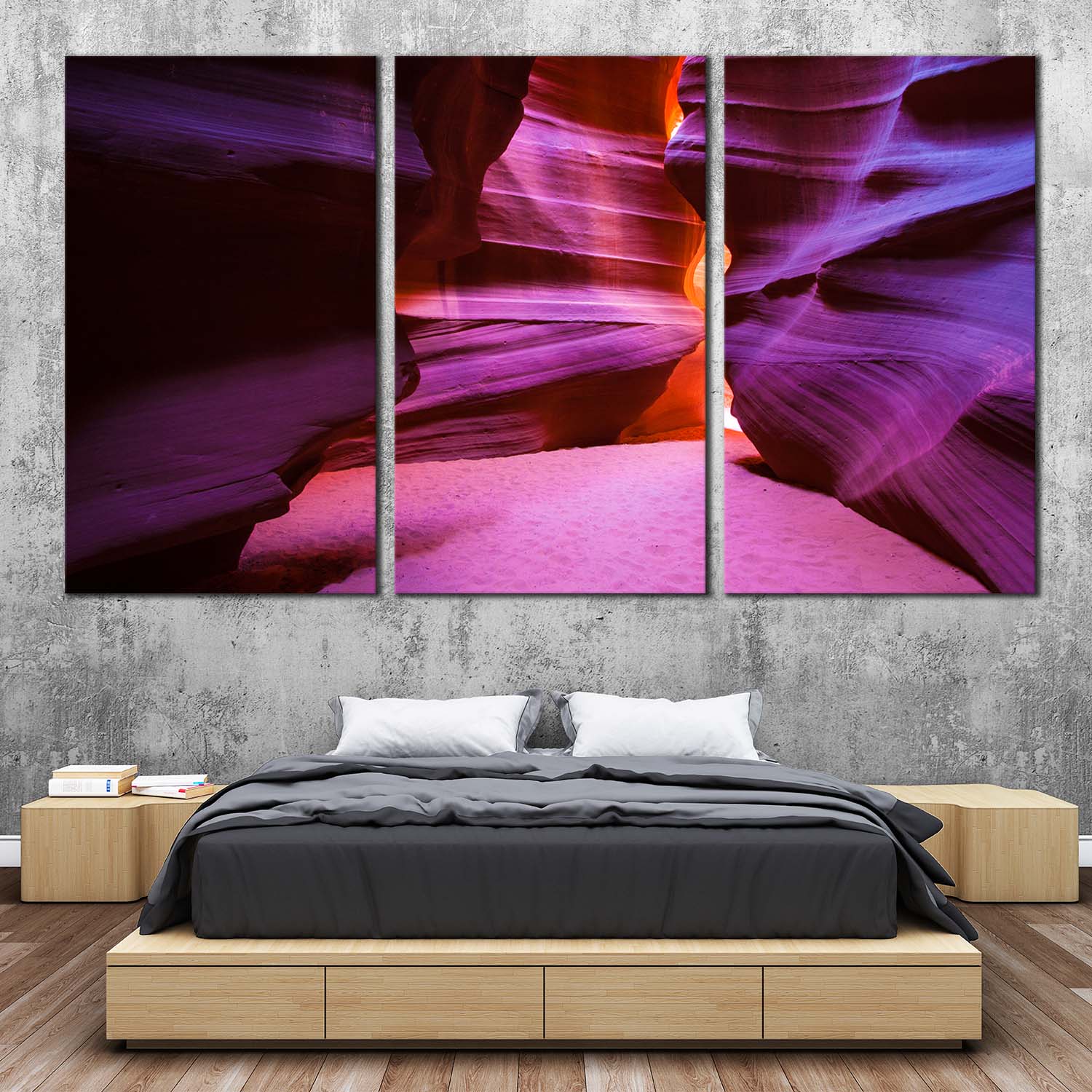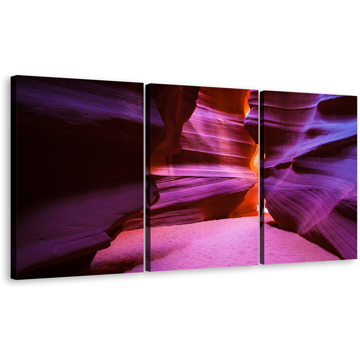 Arizona Desert Canvas Print, Grand Antelope Canyon 3 Piece Canvas Wall Art, Orange Purple Cave Light Canvas Set Canvas Print