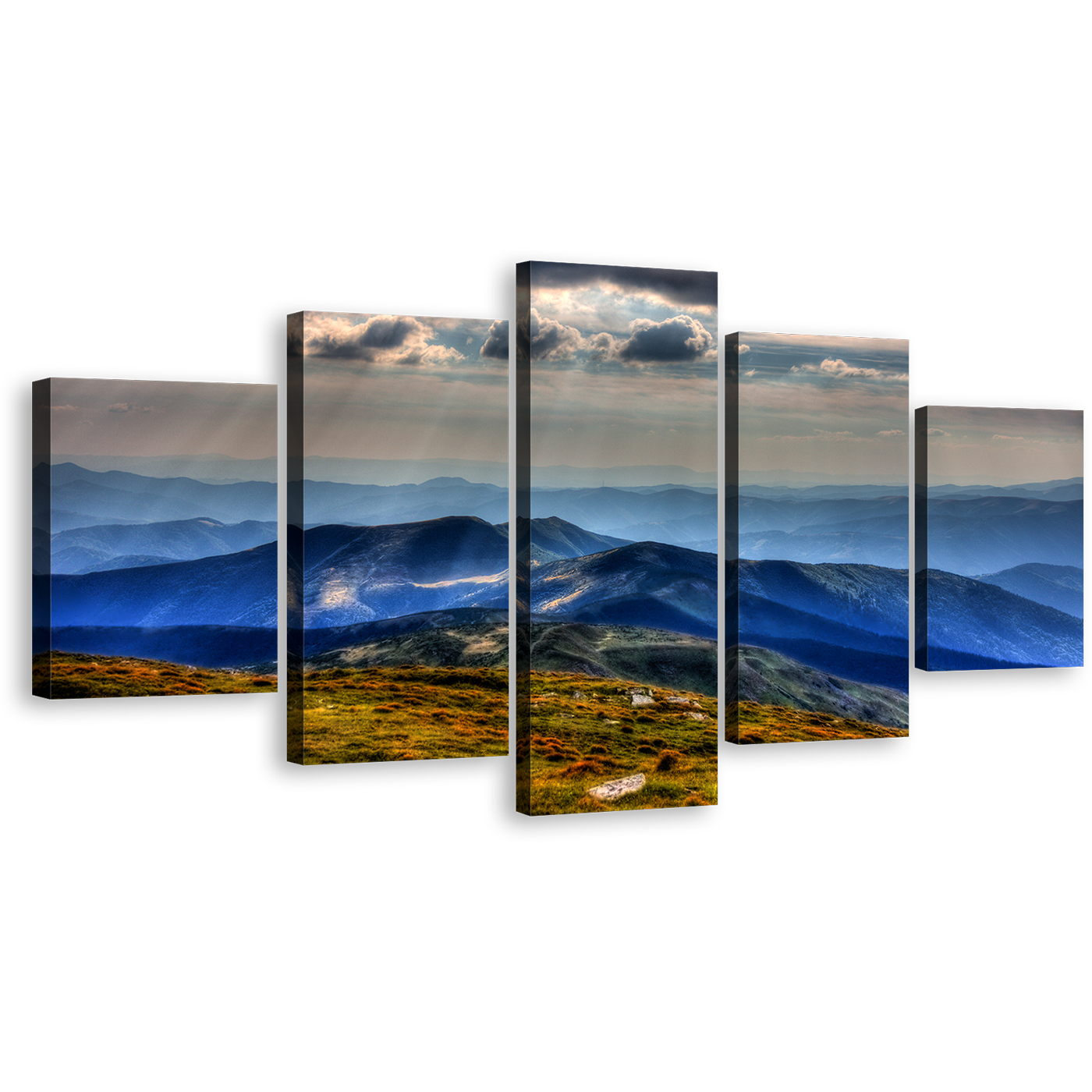 Carpathians Scenery Canvas Wall Art, Green National Park Chornogora Multiple Canvas, Petros Moun Blue Landscape 5 Piece Canvas Print Canvas Print