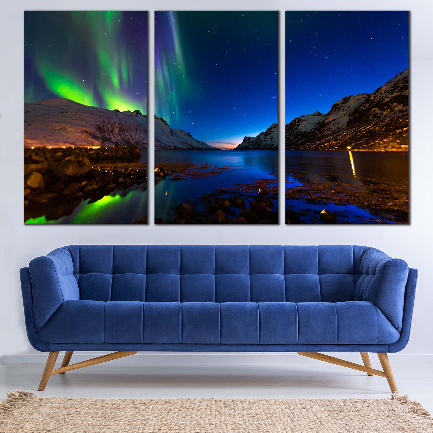 Polar Lights Canvas Print, Captivating Ersfjord Toms Aurora Green Blue Sky 3 Piece Canvas Muti-panel Art Canvas Print