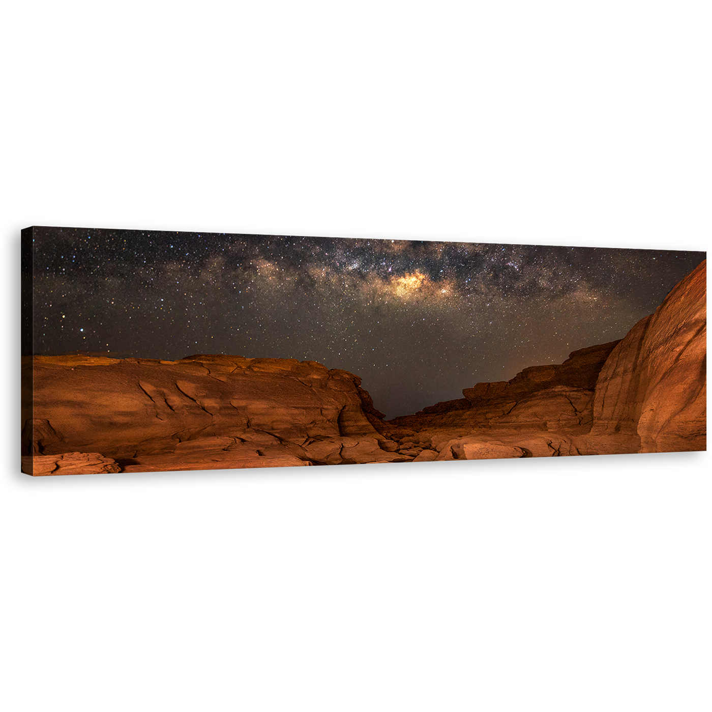 Grand Canyon Canvas Wall Art, Milky Way Desert Canvas Artwork, Brown Sampanbok Natural Stone Park Panoramic Canvas Print, Thailand Grey Starry Sky Wide Canvas Canvas Print