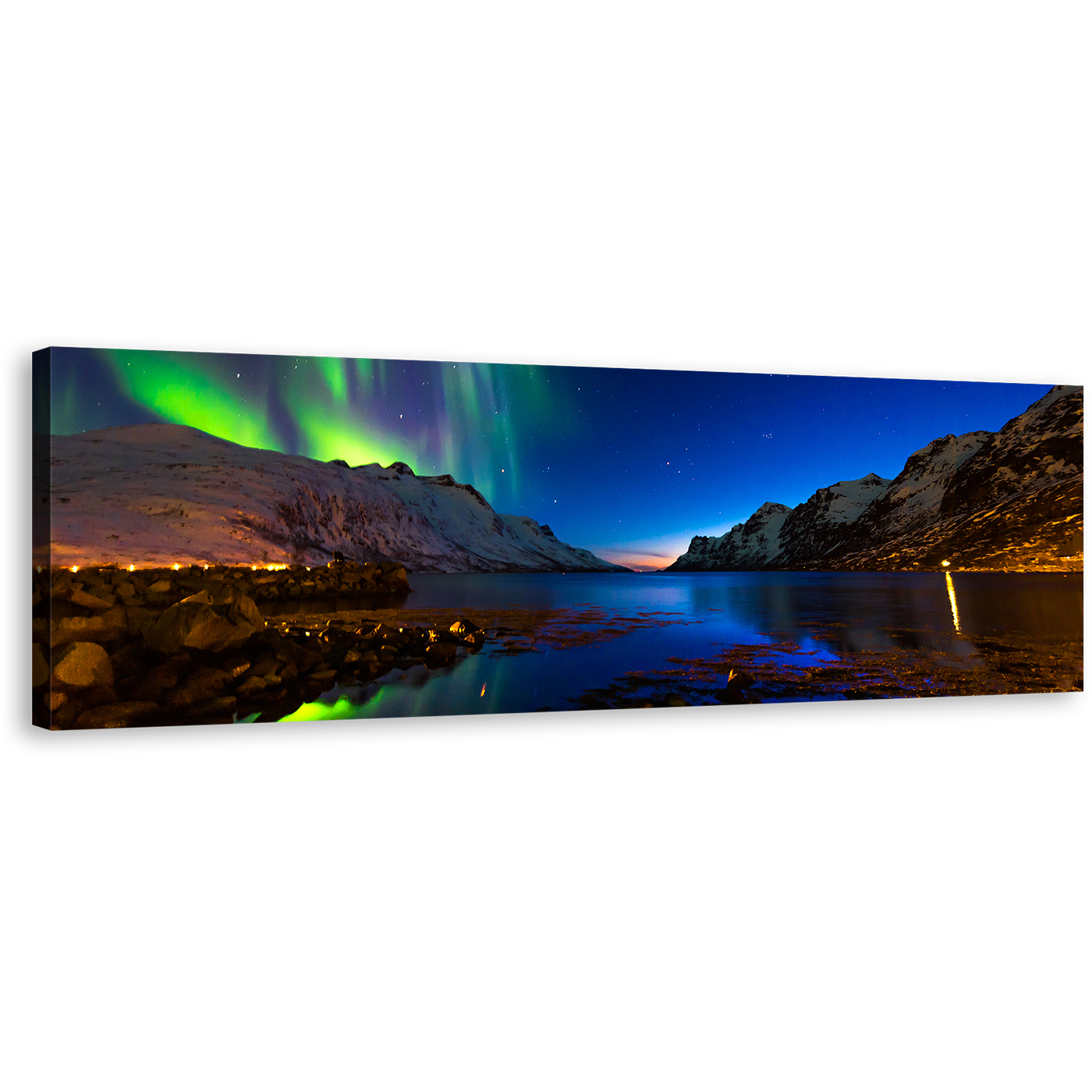 Ersfjord Toms Canvas Wall Art, Majestic Blue Green Aurora Norway Polar Lights Over Serene Waters 1 Piece Canvas Print Canvas Print