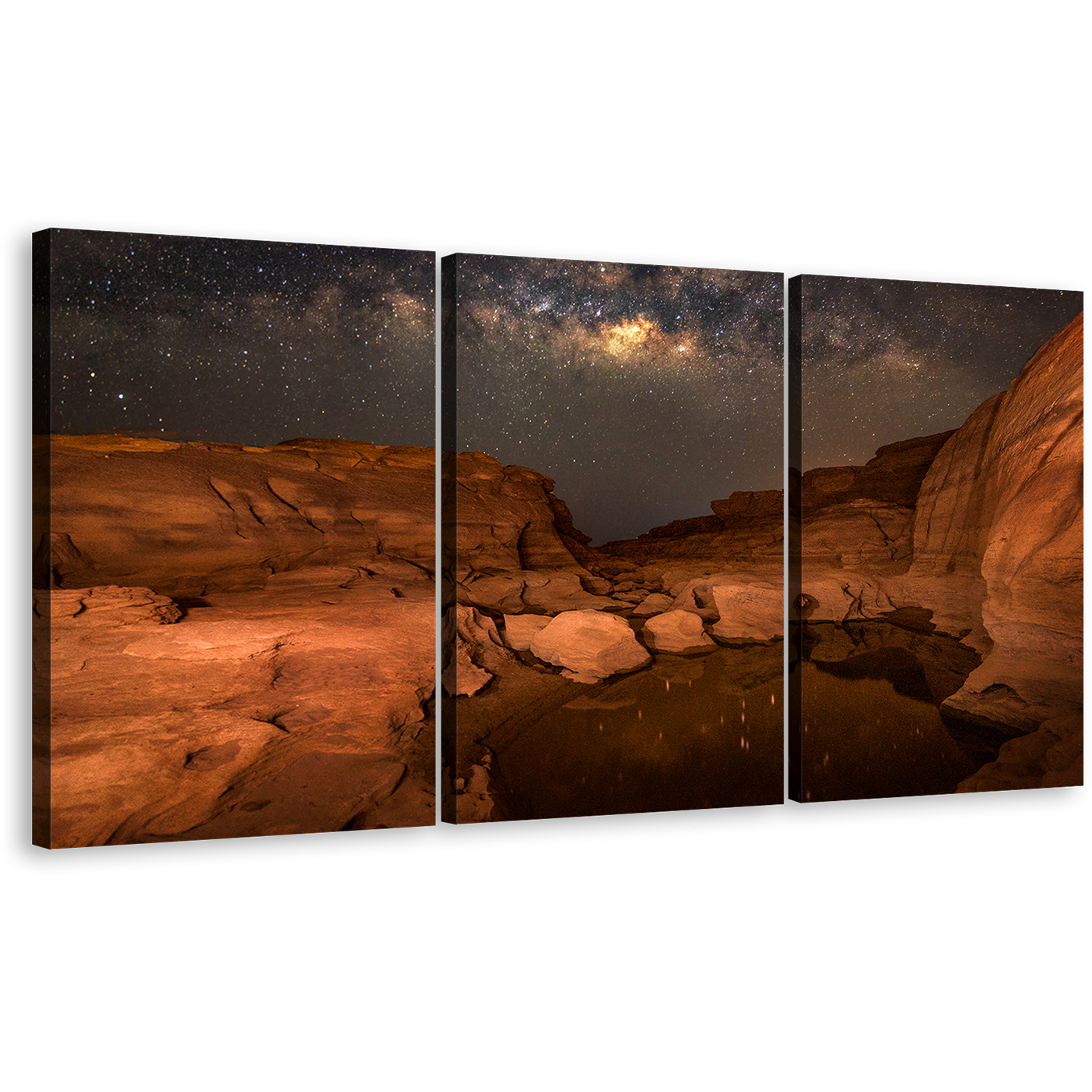 Sampanbok Desert Canvas Wall Art, Brown Grand Canyon Thailand Canvas Set, Grey Sky Milky Way Desert 3 Piece Canvas Print Canvas Print