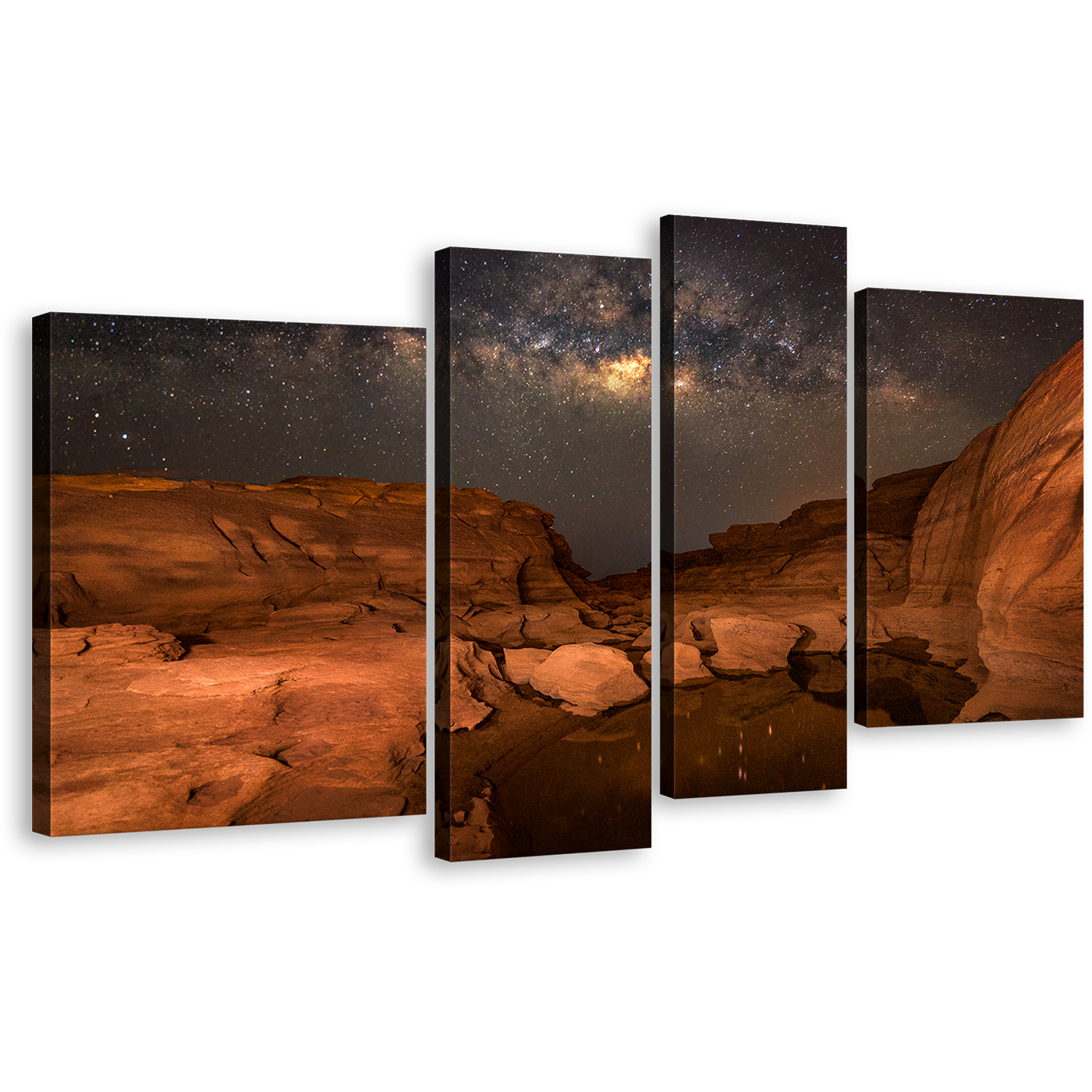 Thailand Desert Canvas Wall Art, Brown Sampanbok Natural Stone Park Canvas Print, Grey Sky Milky Way Desert Canvas Set, Grand Canyon Mountain Desert 4 Piece Canvas Canvas Print